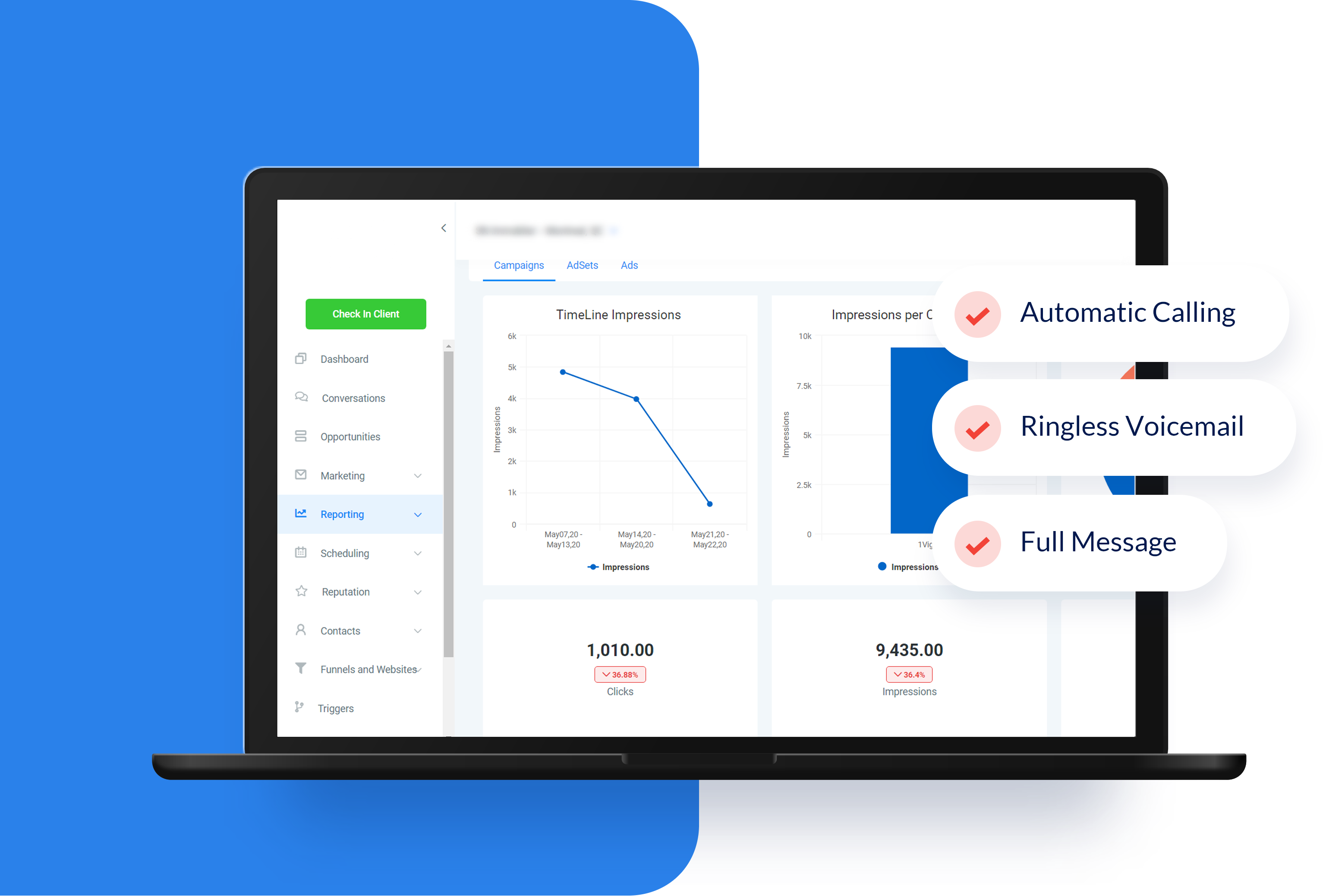 The ability to track the ROI and Leads in a pipeline has become even easier through our advanced Dashboard. Track stats such as appointment rates, campaign effectiveness, and even response rates!