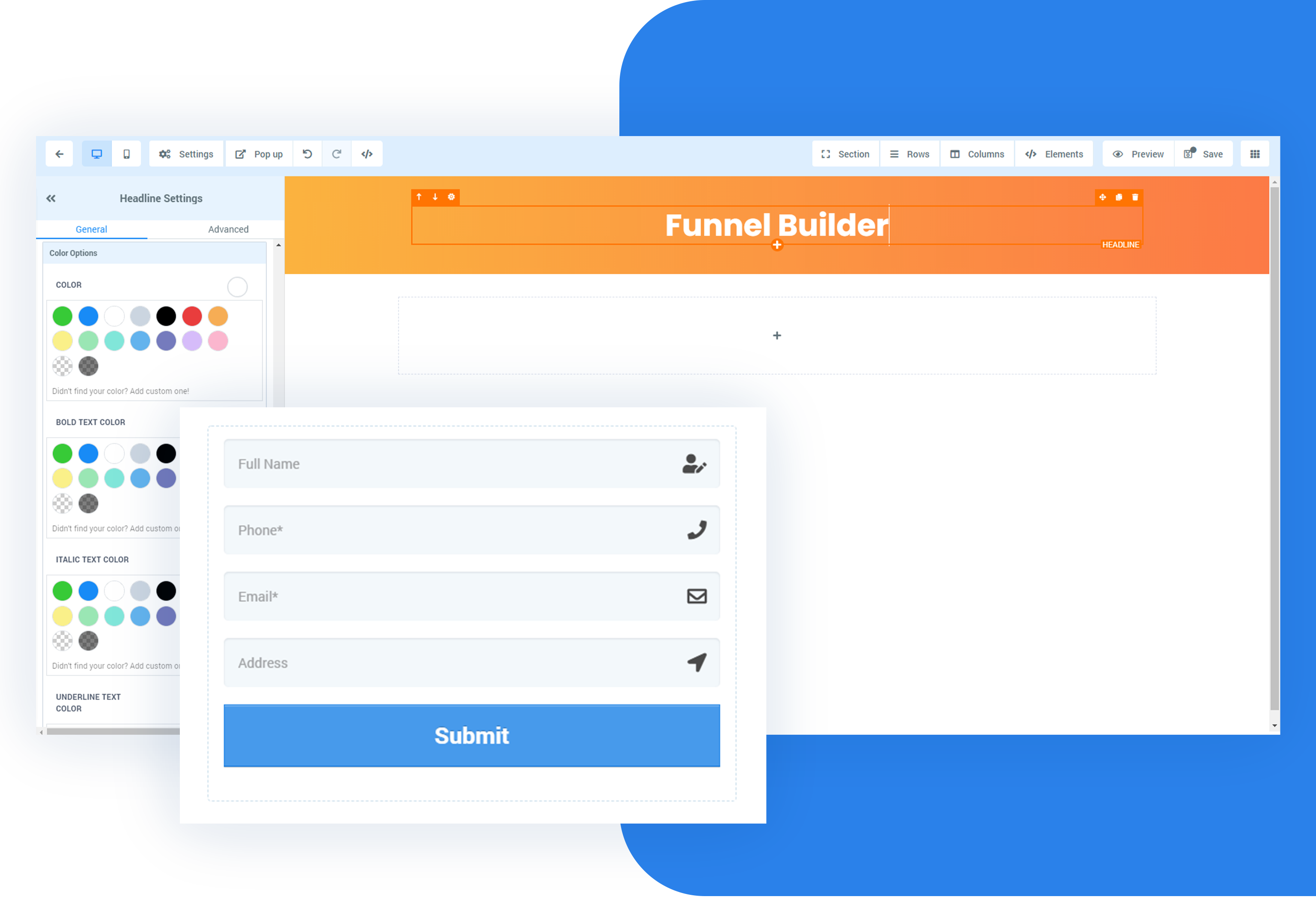 Use our drag-and-drop form and funnel builders to create landing pages that convert traffic to leads that get stored in GrowCRM.